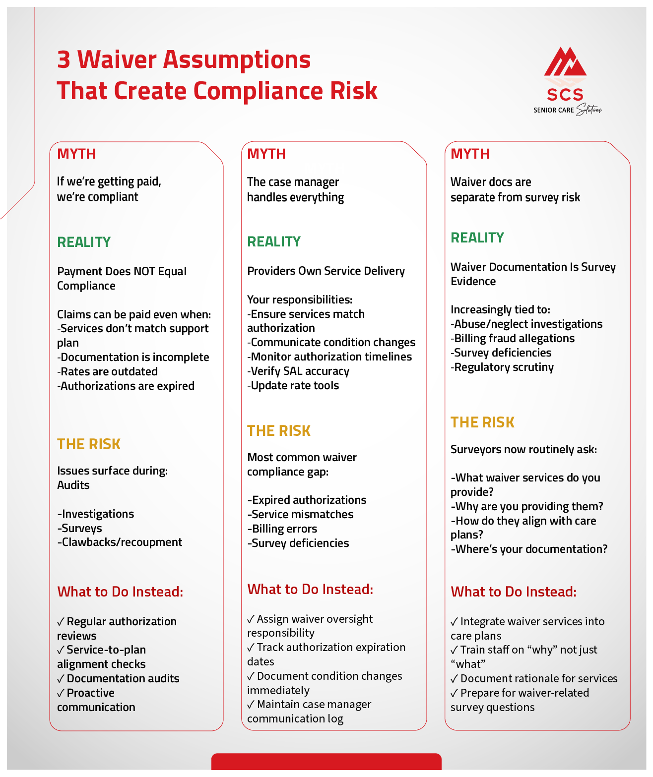 Many providers believe they “understand” waiver services because they submit claims and receive payment. However, true understanding goes far beyond billing. It requires clarity around authorization, service delivery, documentation, oversight, and compliance—all areas closely scrutinized by counties, managed care organizations (MCOs), and surveyors.